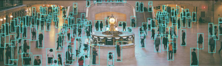 Crowd Detection estimates the number of people within a given area in real time and triggers an alarm when a specified number of people (capacity) or a specified percentage of people (occupancy) is reached. Crowd Detection is ideal for public surveillance applications where the volume of people needs to be monitored for public safety or quality of service